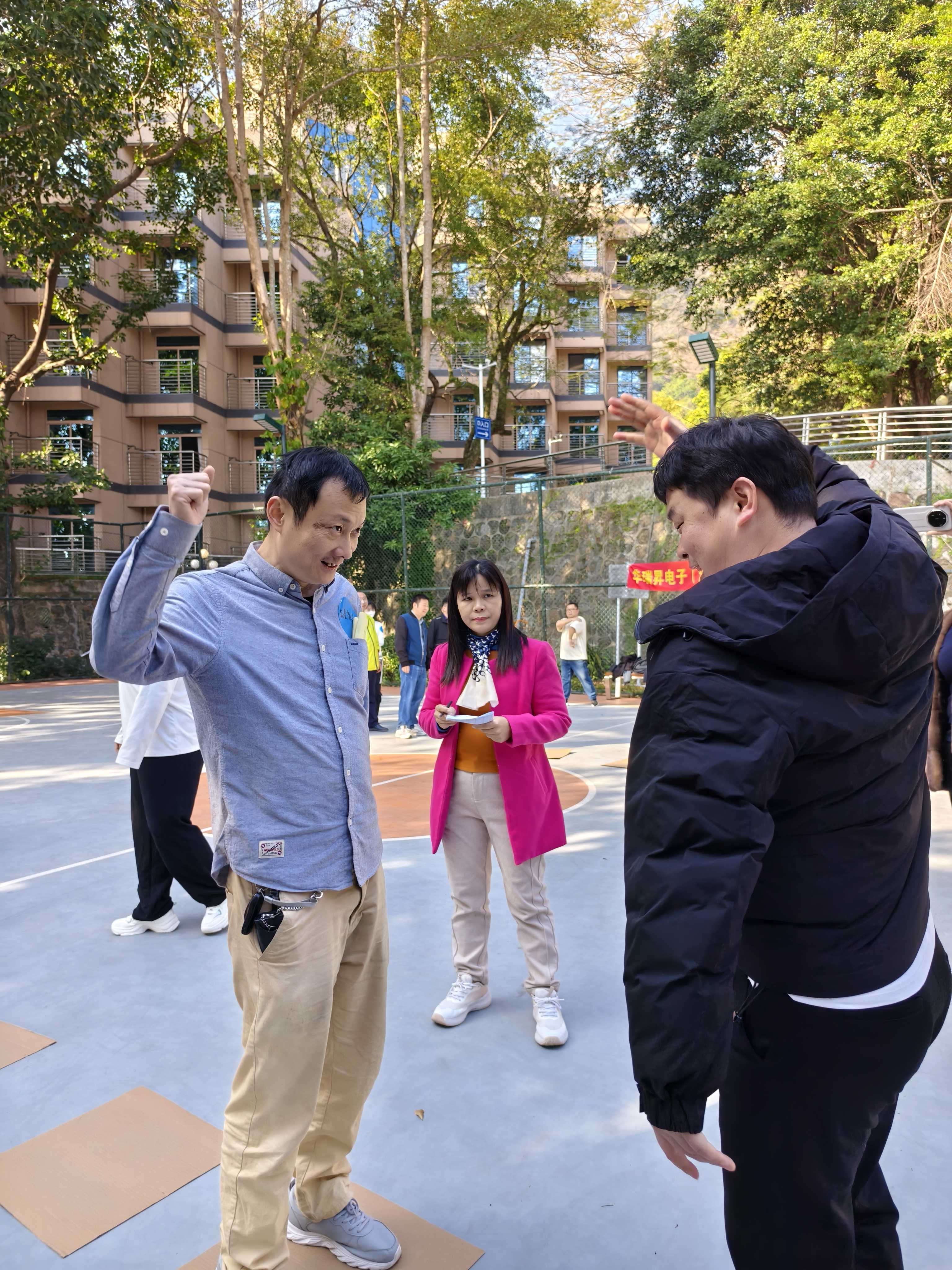 清晨的阳光洒在篮球场基地,华瑞昇的伙伴们已整齐列队,蓄势待发。在行政部同事的带领下,一场充满欢笑与活力的团队热身正式启动——伸展、跳动、击掌、欢呼,每一个动作都在唤醒身体的能量,每一次互动都在增进彼此的默契。